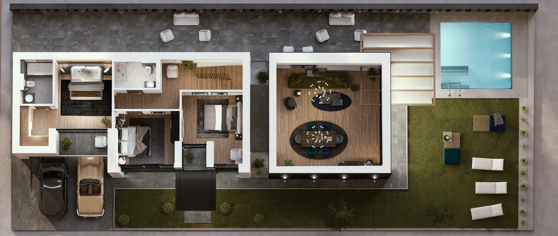 Proiect de amenajare interioară completă a unei case unifamiliale, executat în vederea promovării spre vânzarea la cheie a imobilului.