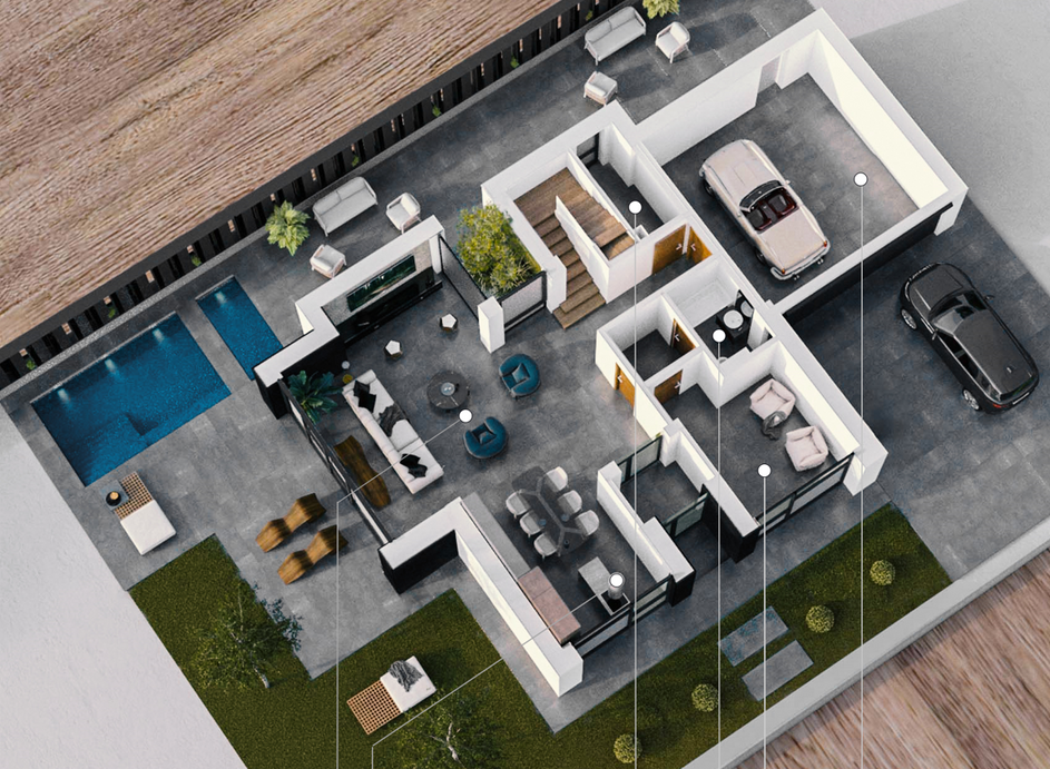 Proiect de amenajare interioară completă a unei case unifamiliale, executat în vederea promovării spre vânzarea la cheie a imobilului.