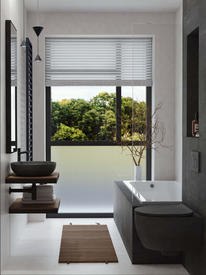 Soluția găsită se adresează unui cuplu care dorește un ambient liniștit și rafinat, folosind materiale naturale autentice, dar cu aspect modern, în concordanță cu arhitectura clădirii.