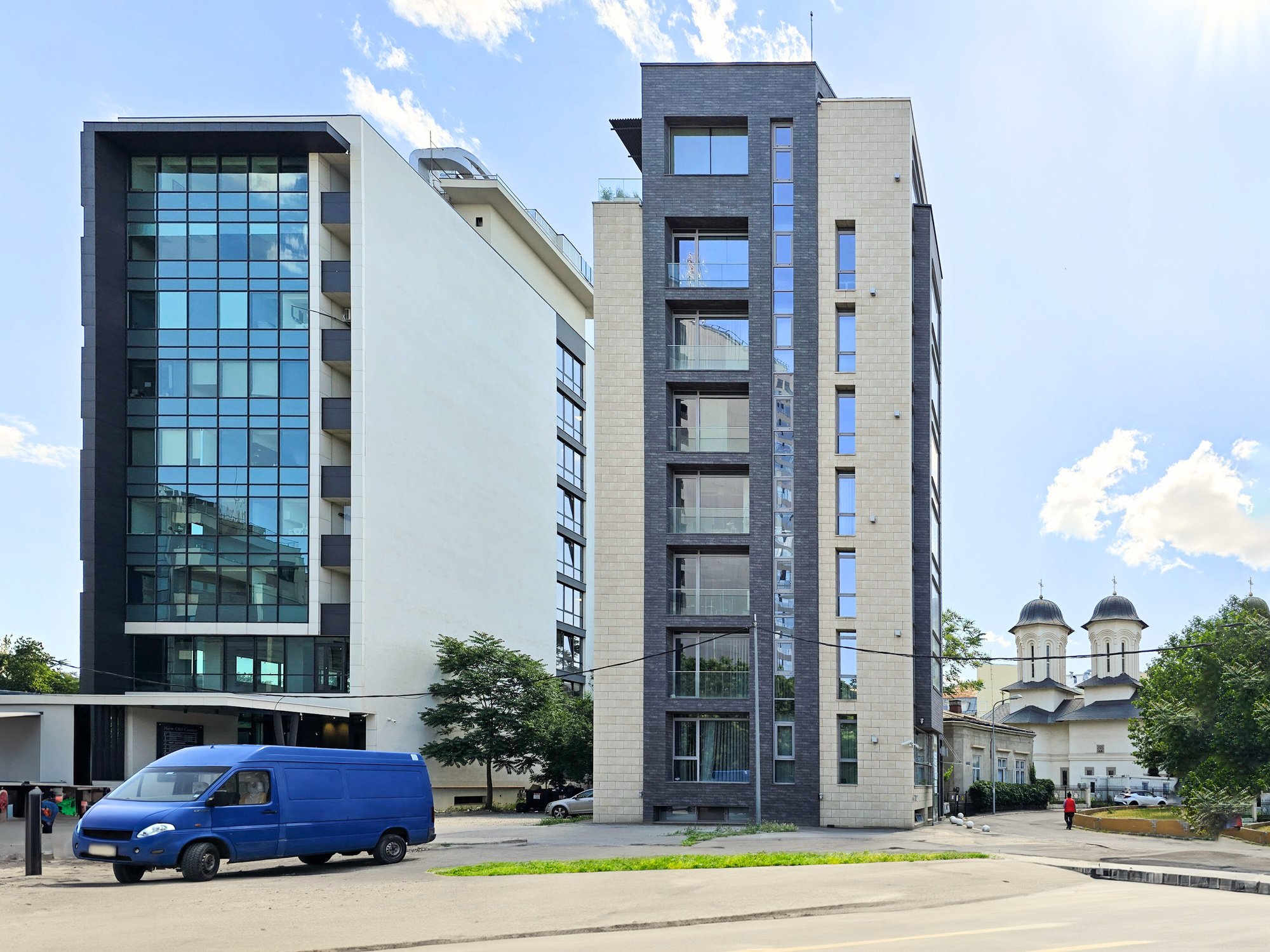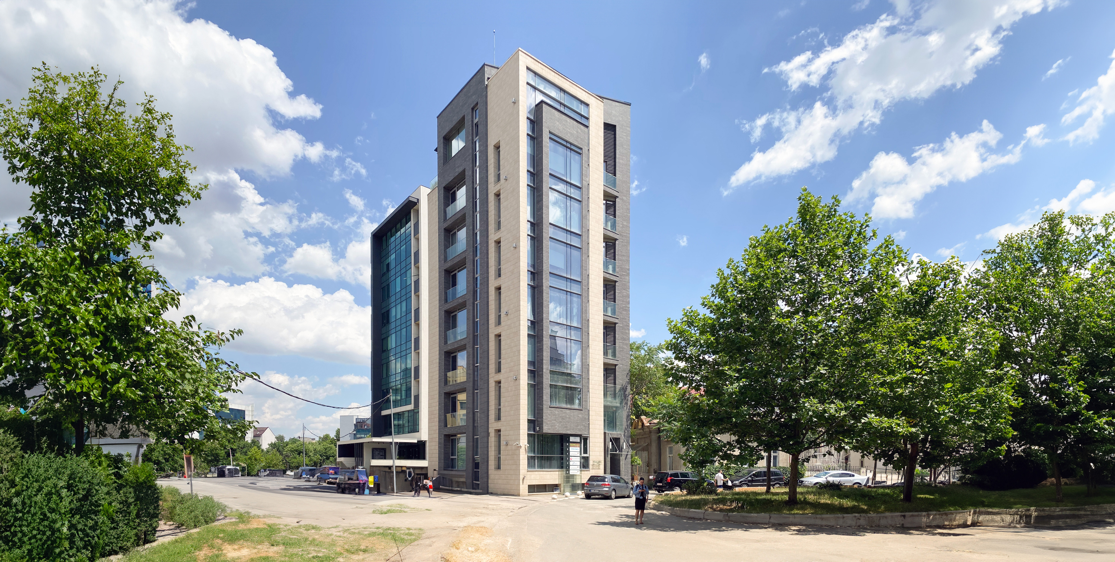 Proiectul constă in soluționarea fațadei și amenajărilor interioare a unei cladiri construite in perioada anterioară anului 2010. Având aproximativ 1200 mp, clădirea are demisol și șapte niveluri supraterane. La demisol și ultimul nivel sunt amenajate apartamente, iar în rest, la fiecare nivel, se află câte un birou tip open space. Rezolvarea fațadei s-a făcut cu placaje ceramice în sistem fațadă ventilată, creându-se astfel un joc de volume care rupe monotonia.