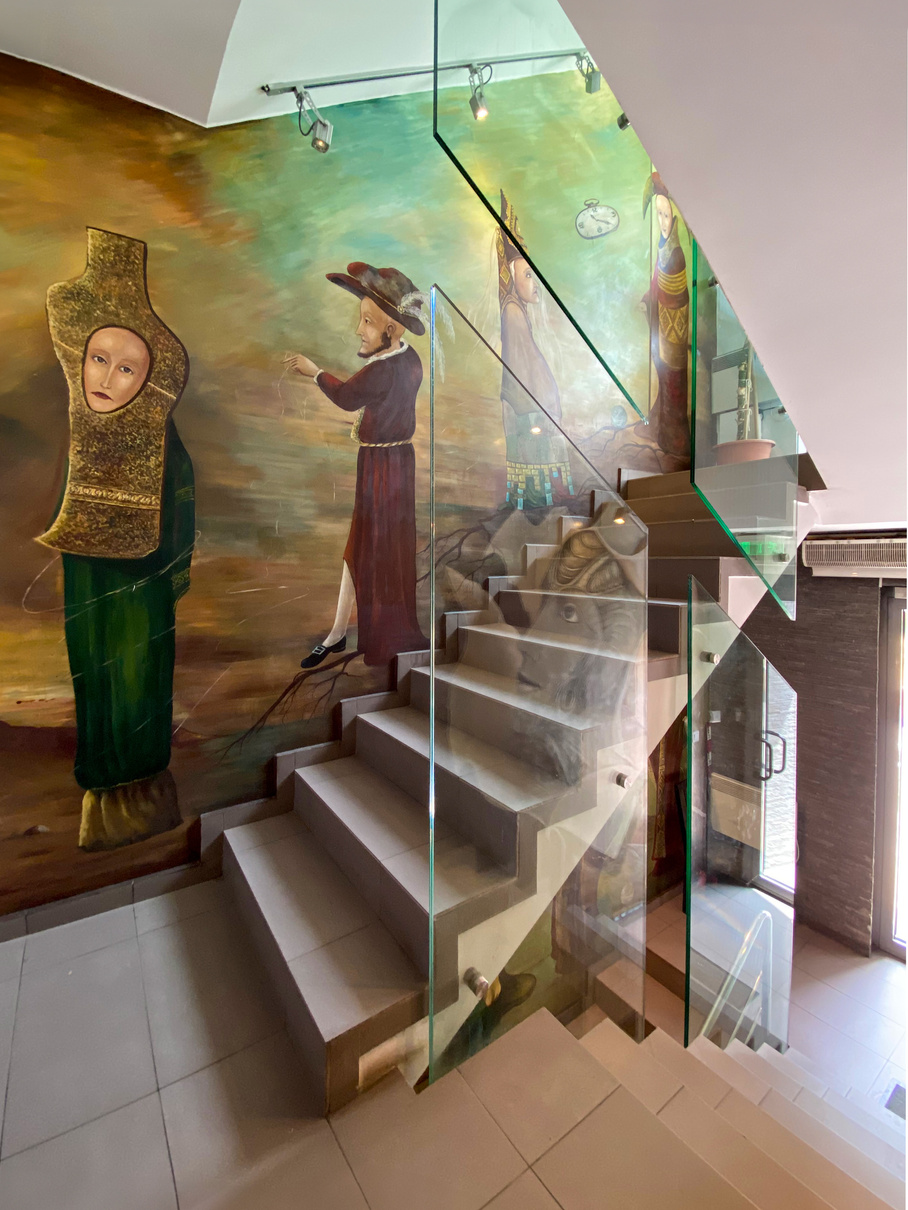 Cu ajutorul pictoriței Carolina Constantin spațiul a căpătat personalitate, aceasta exprimand în manieră proprie trecerea timpului. Întreaga pictură este o singura poveste care se desfășoară de jos în sus, așa cum si viața noastră trece din copilăriei în maturitate si batrânețe. Rezultatul final este unul de excepție, care ne atrage prin eleganță și mesaj.